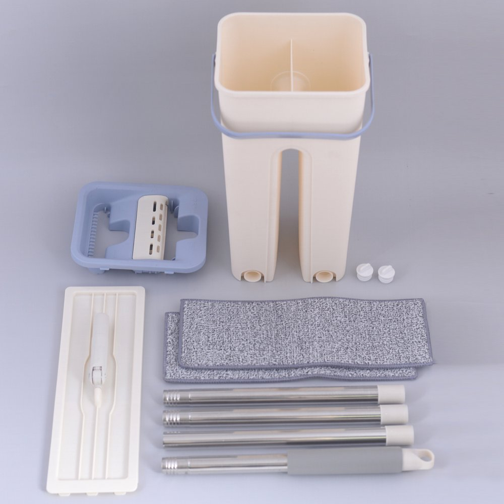 Изготовлено: швабра из нержавеющей стали, пластмассы (ABS, полипропилен), насадки из микрофибры (100% полиэстер), ведро из пластмассы (ABS, полипропилен).