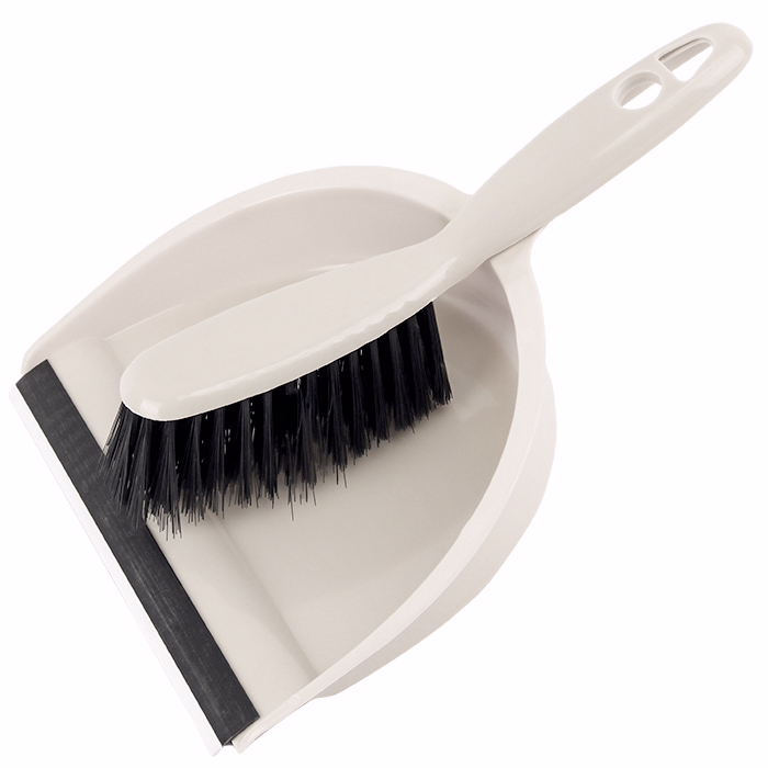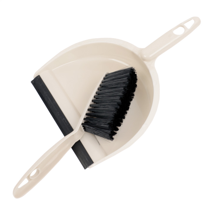 Изделие в комплекте имеет совок оснащённый резиновой накладкой, который идеально прилегает к поверхности пола для более удобного сбора мусора. Щётка плотно закрепляется в ручке совка. Комплект имеет компактный размер и не займёт много места при хранении.