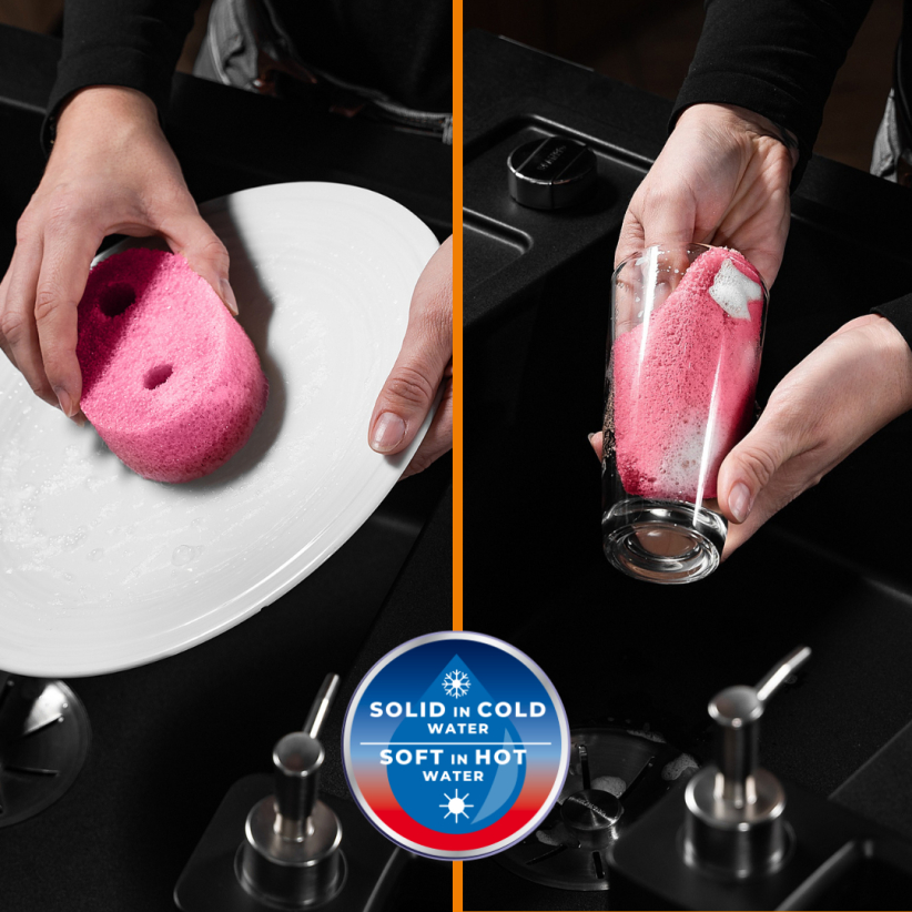 В холодной воде губка "Erla Yodo" жесткая, что делает ее чрезвычайно эффективной для удаления самых сложных загрязнений, например, обгоревших сковородок. В то же время она остается безопасной для хрупких поверхностей. Смоченная в теплой воде, она становится мягкой и более абсорбирующей, тогда она будет работать, например, как губка для посуды – ею можно безопасно мыть даже нежные стекла.