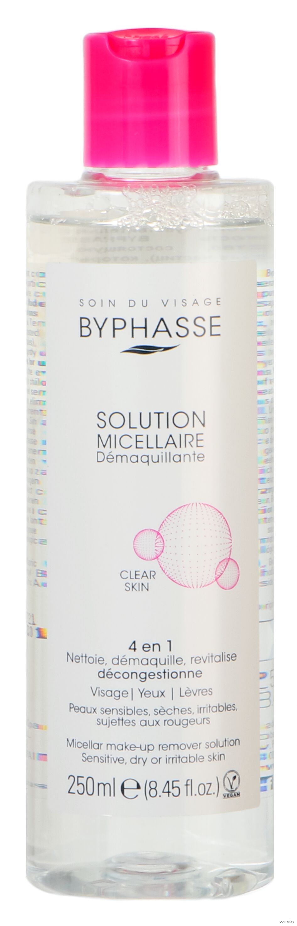 Новейший мицеллярный раствор Byphasse – это очищающая вода, состоящая из мицелл (мелких поверхностно-активных частиц), которая гарантирует бережное удаление макияжа с лица, глаз и губ. Мицеллы, содержащиеся в этой формуле, обеспечивают идеальную чистку без ощущения жирности и необходимости смывания. Мицеллярная вода бережно и одновременно эффективно избавляет от загрязнений, обычной и водостойкой косметики, позволяет эпидермису длительное время находиться в комфортном состоянии.
