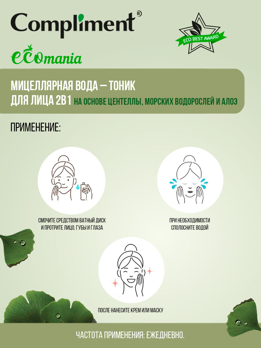 Мицеллярная вода-тоник на основе центеллы, морских водорослей и алоэ бережно очищает, увлажняет и тонизирует кожу. Удаляет макияж и глубокие загрязнения с лица, глаз и губ, обеспечивает дополнительный восстанавливающий и разглаживающий уход, подготавливает кожу к нанесению крема или маски.