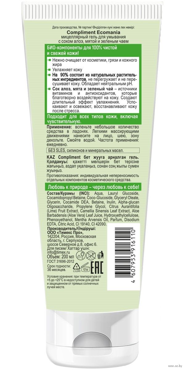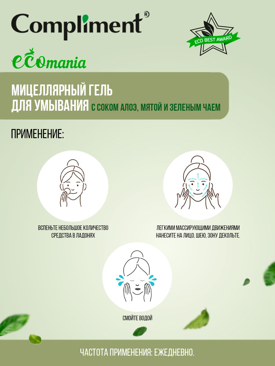 Мицеллярный гель для умывания с соком алоэ, мятой и зеленым чаем нежно очищает от косметики, грязи и кожного жира. Увлажняет кожу, на 90% состоит из натуральных растительных ингредиентов, не перегружает и не пересушивает. Обладает нейтральным pH.