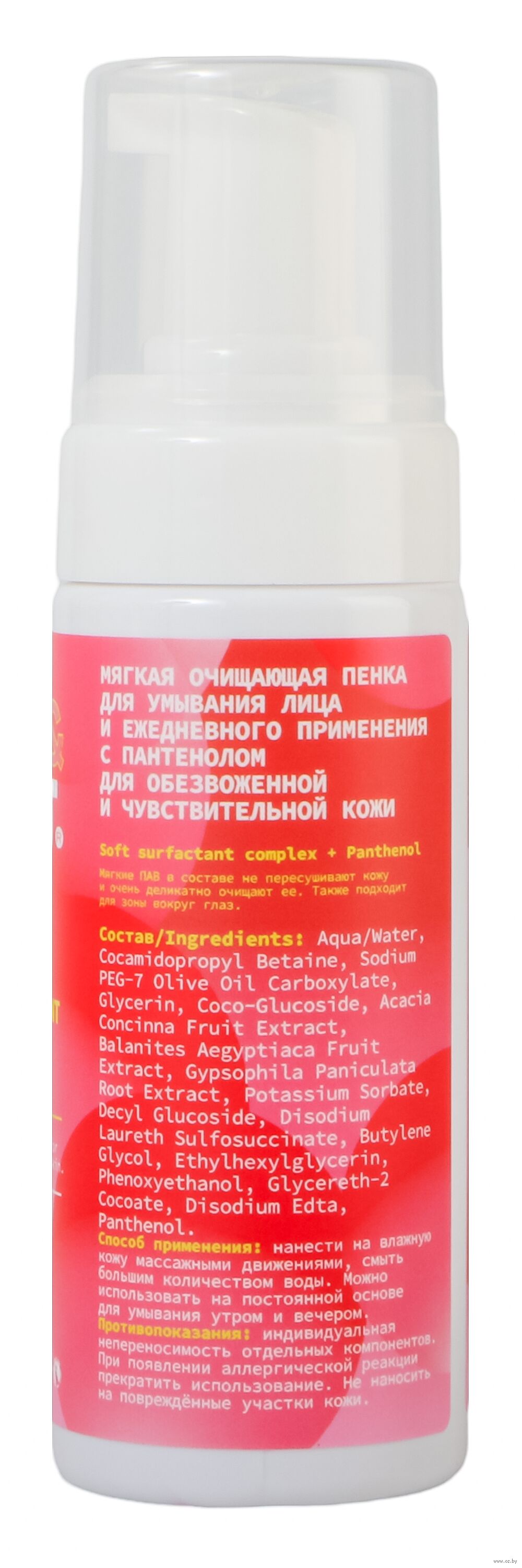 Мягкая очищающая пенка для умывания лица и ежедневного применения с пантенолом для обезвоженной и чувствительной кожи.