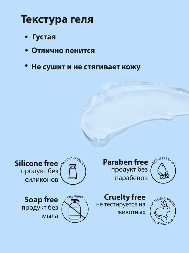 Гель для умывания подходит для всех типов кожи и предназначен для ежедневного бережного, но эффективного удаления загрязнений и макияжа с кожи лица.