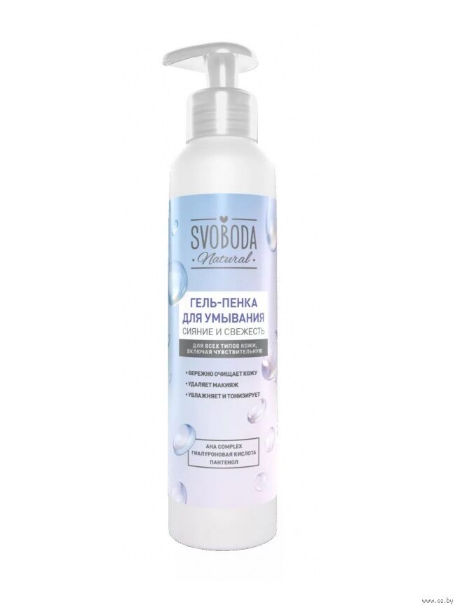 Нежная гель-пенка бережно очищает кожу лица от загрязнений и макияжа, не вызывая пересушивания и раздражения. Входящая в состав гиалуроновая кислота интенсивно увлажняет кожу и придает ей тонус. Пантенол оказывает успокаивающее действие и стимулирует процесс естественного обновления кожи. AHA complex, включающий в себя фруктовые кислоты и экстракты, насыщает кожу витаминами и возвращает коже естественное сияние.