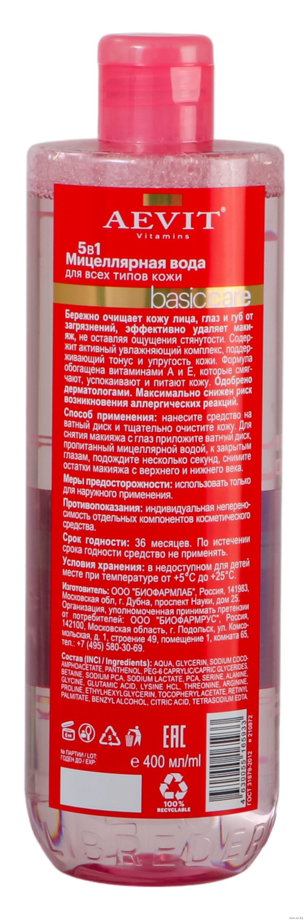 Нанести средство на ватный диск и тщательно очистить кожу лица, губ и глаз от макияжа, включая ресницы и веки. Для снятия макияжа с глаз приложите ватный диск, пропитанный мицеллярной водой, к закрытым глазам, подождите несколько секунд, снимите остатки макияжа на верхнем и нижнем веке.Состав