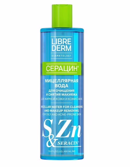 Мицеллярная вода "Серацин" бережно очищает жирную, комбинированную и чувствительную кожу от загрязнений и макияжа. Легко смывает тушь с ресниц, не раздражая глаза. Специальная мягкая формула не содержит SLS, SLES, парабенов и агрессивных очищающих ингредиентов. Входящий в состав пантенол смягчает и защищает чувствительную кожу от раздражения и пересушивания.