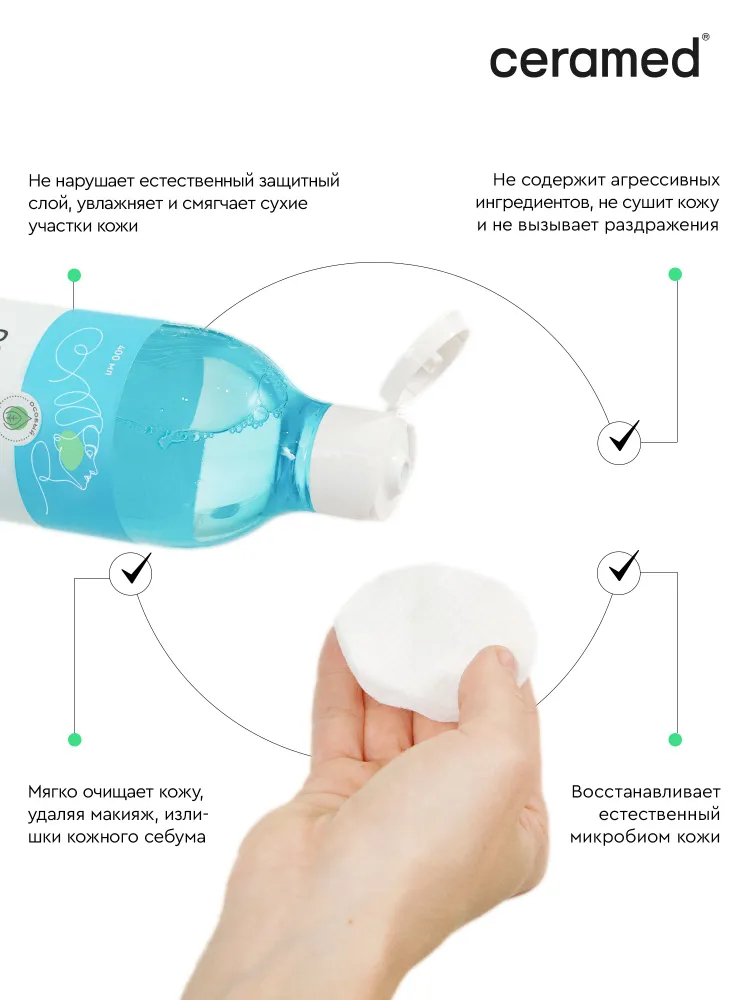Мицеллярная вода с бережной гипоаллергенной формулой мягко очищает кожу, удаляя излишки кожного себума, частички грязи и пыли.
