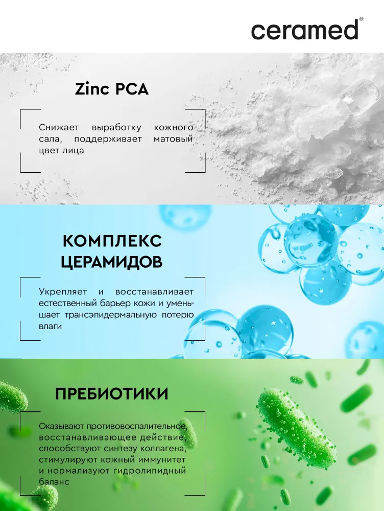 | Активные ингредиенты | Глицерин, молочная кислота, растительные экстракты, церамиды (керамиды), цинк |