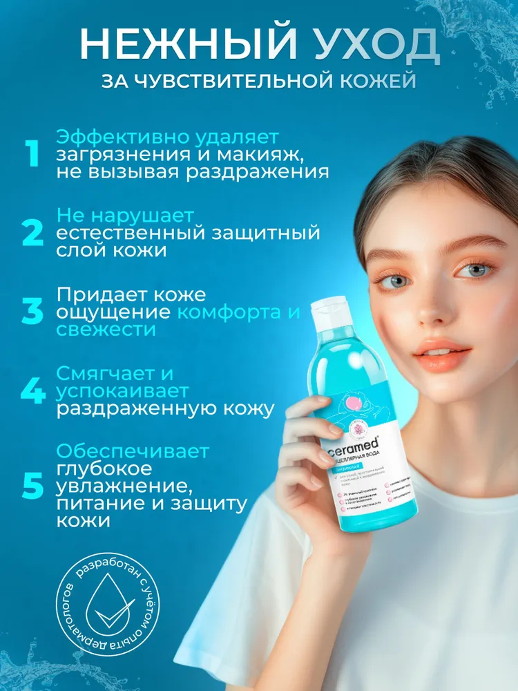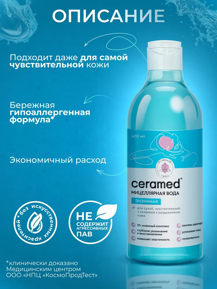 Мицеллярная вода с бережной гипоаллергенной формулой мягко очищает кожу, удаляя излишки кожного себума, частички грязи и пыли.