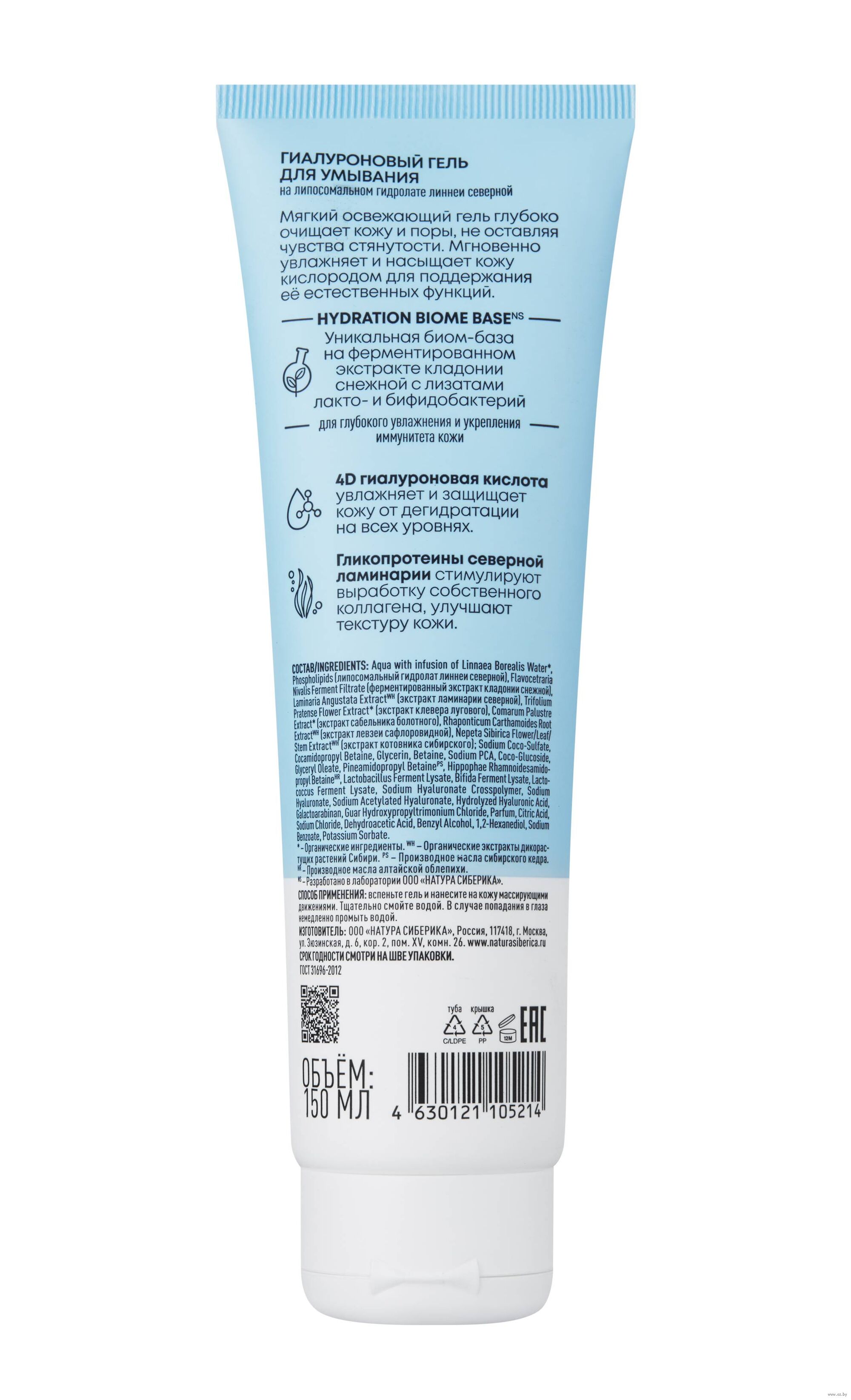 Aqua with infusion of Linnaea Borealis Water*, Phospholipids (липосомальный гидролат линнеи северной), Flavocetraria Nivalis Ferment Filtrate (ферментированный экстракт кладонии снежной), Laminaria Angustata ExtractWH (экстракт ламинарии северной), Trifolium Pratense Flower Extract* (экстракт клевера лугового), Comarum Palustre Extract* (экстракт сабельника болотного), Rhaponticum Carthamoides Root ExtractWH (экстракт левзеи сафлоровидной), Nepeta Sibirica Flower/Leaf/Stem ExtractWH (экстракт котовника сибирского); Sodium Coco Sulfate, Cocamidopropyl Betaine, Glycerin, Betaine, Sodium PCA, Coco-Glucoside, Glyceryl Oleate, Pineamidopropyl BetainePS, Hippophae Rhamnoidesamidopropyl BetaineHR, Lactobacillus Ferment Lysate, Bifida Ferment Lysate, Lactococcus Ferment Lysate, Sodium Hyaluronate Crosspolymer, Sodium Hyaluronate, Sodium Acetylated Hyaluronate, Hydrolyzed Hyaluronic Acid, Galactoarabinan, Guar Hydroxypropyltrimonium Chloride, Parfum, Citric Acid, Sodium Chloride, Dehydroacetic Acid, Benzyl Alcohol, 1,2-Hexanediol, Sodium Benzoate, Potassium Sorbate.