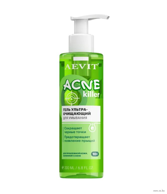 AEVIT ACNEKILLER Ультраочищающий гель для умывания – это идеальное средство для эффективного очищения кожи лица от кожного себума и повседневных загрязнений. Насыщенный антибактериальными компонентами, гель для лица также поможет вам осуществить деликатный демакияж.