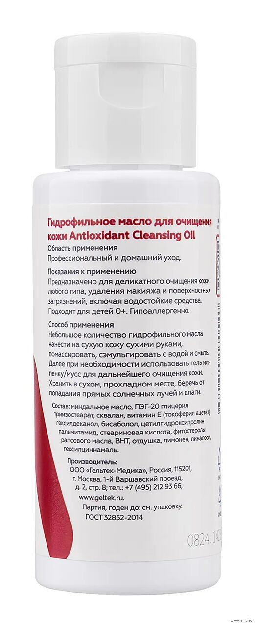 В профессиональном уходе: использовать на этапе очищения кожи всех типов. Распределите гидрофильное масло по сухой коже лица, шеи и декольте, проработайте легкими массирующими движениями, затем увлажните руки водой и проработайте до образования легкой эмульсии. Смойте обильным количеством прохладной или теплой воды.Состав