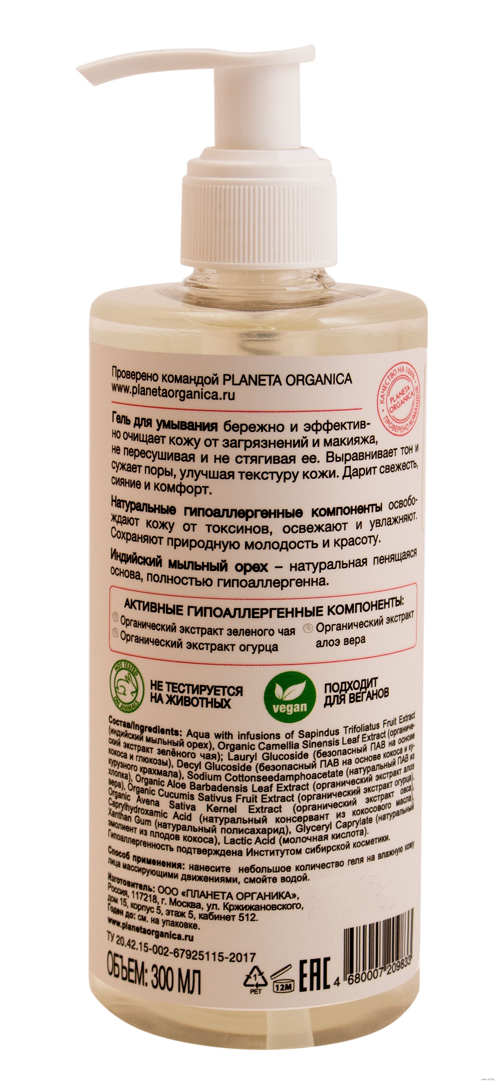 Органический экстракт зеленого чая тонизирует и освобождает кожу от токсинов, органический экстракт огурца освежает, органический экстракт алоэ вера успокаивает и увлажняет кожу.