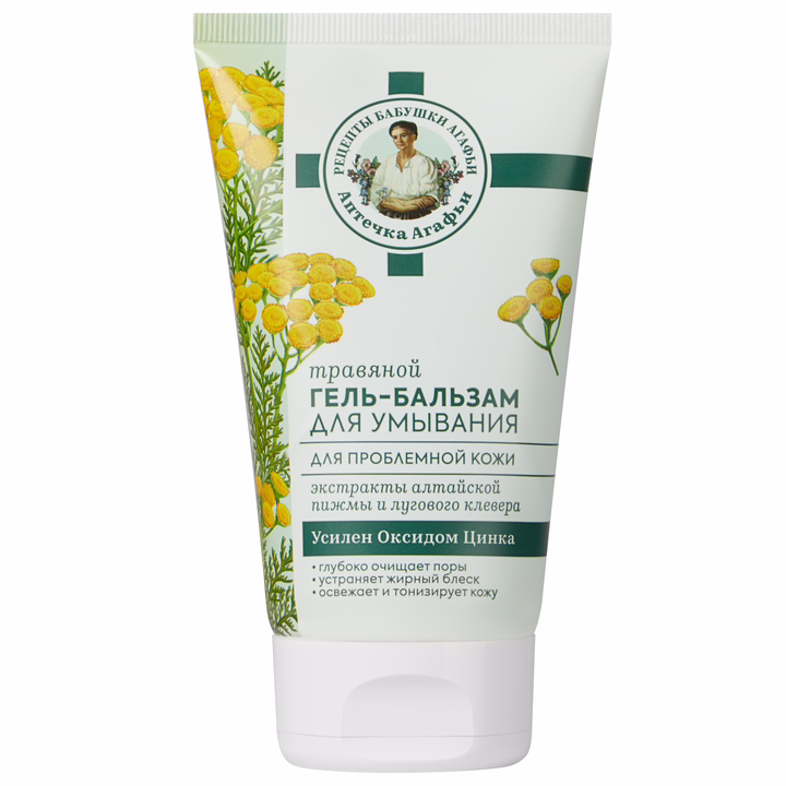 Травяной гель-бальзам для умывания на серебряной воде создан по старинным рецептам сибирской травницы Агафьи Тихоновны Ермаковой. Он эффективно, но деликатно очищает поверхность кожи от загрязнений, помогает бороться с чёрными точками, прекрасно освежает кожу, возвращает ей естественное природное сияние и гладкость.