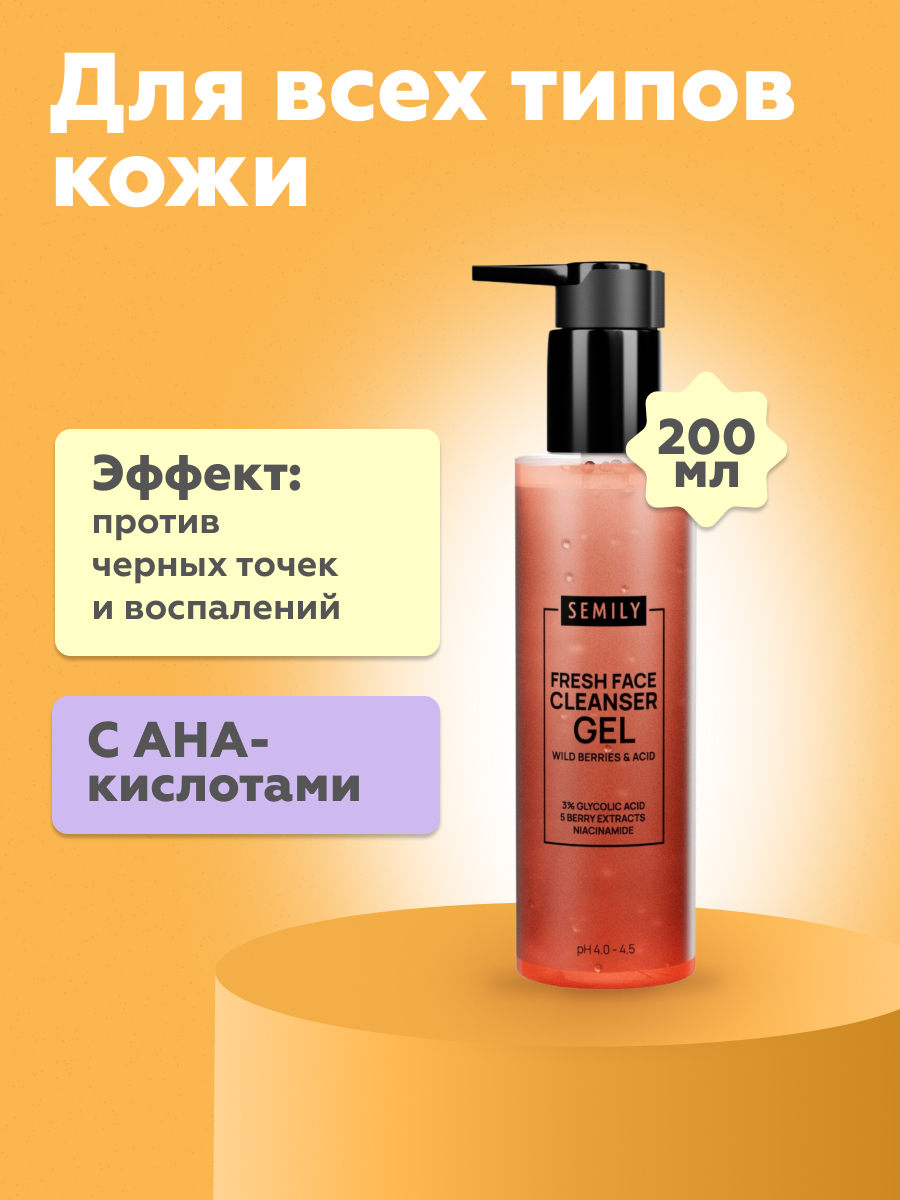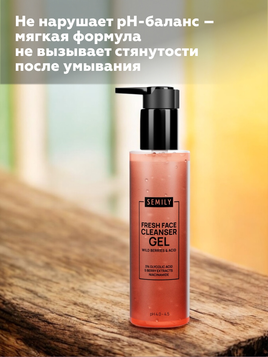Ягодный гель для умывания с кислотами глубоко очищает поры, выравнивает тон и обновляет верхний слой кожи, способствуя гладкости и сиянию.
