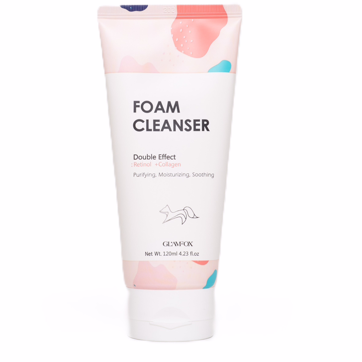 Очищающая пенка GLAMFOX Retinol Collagen Foam Cleanser, которая сочетает в себе глубокое очищение с интенсивным антивозрастным уходом. Нежная, воздушная пена бережно, но эффективно удаляет макияж, загрязнения и излишки себума, не нарушая естественный гидролипидный баланс кожи.