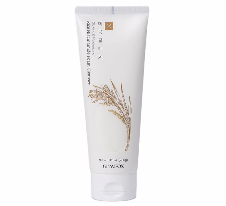 Мягкая и эффективная пенка GLAMFOX Rice Niacinamide Foam Cleanser для ежедневного очищения кожи, разработанная для бережного ухода за любым типом кожи.