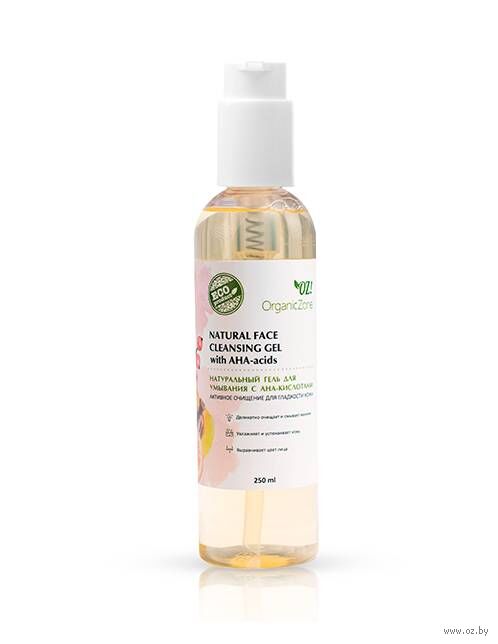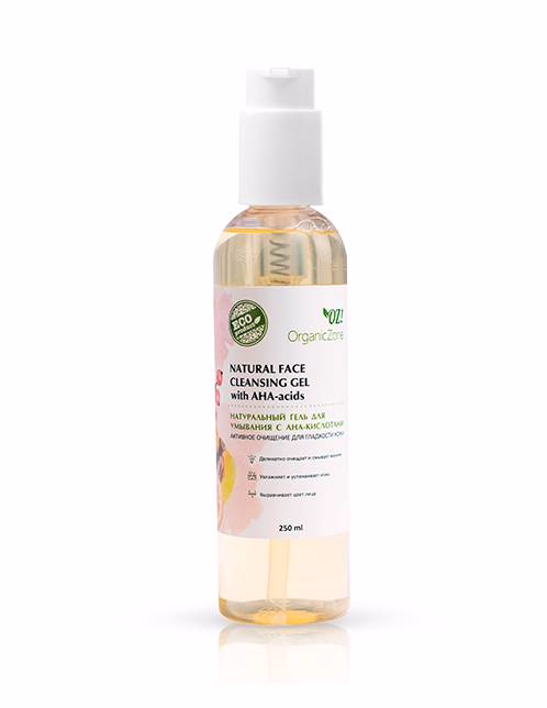 Натуральный гель для умывания c AHA-кислотами способствует мягкому отшелушиванию омертвевших клеток, деликатно очищает кожу.