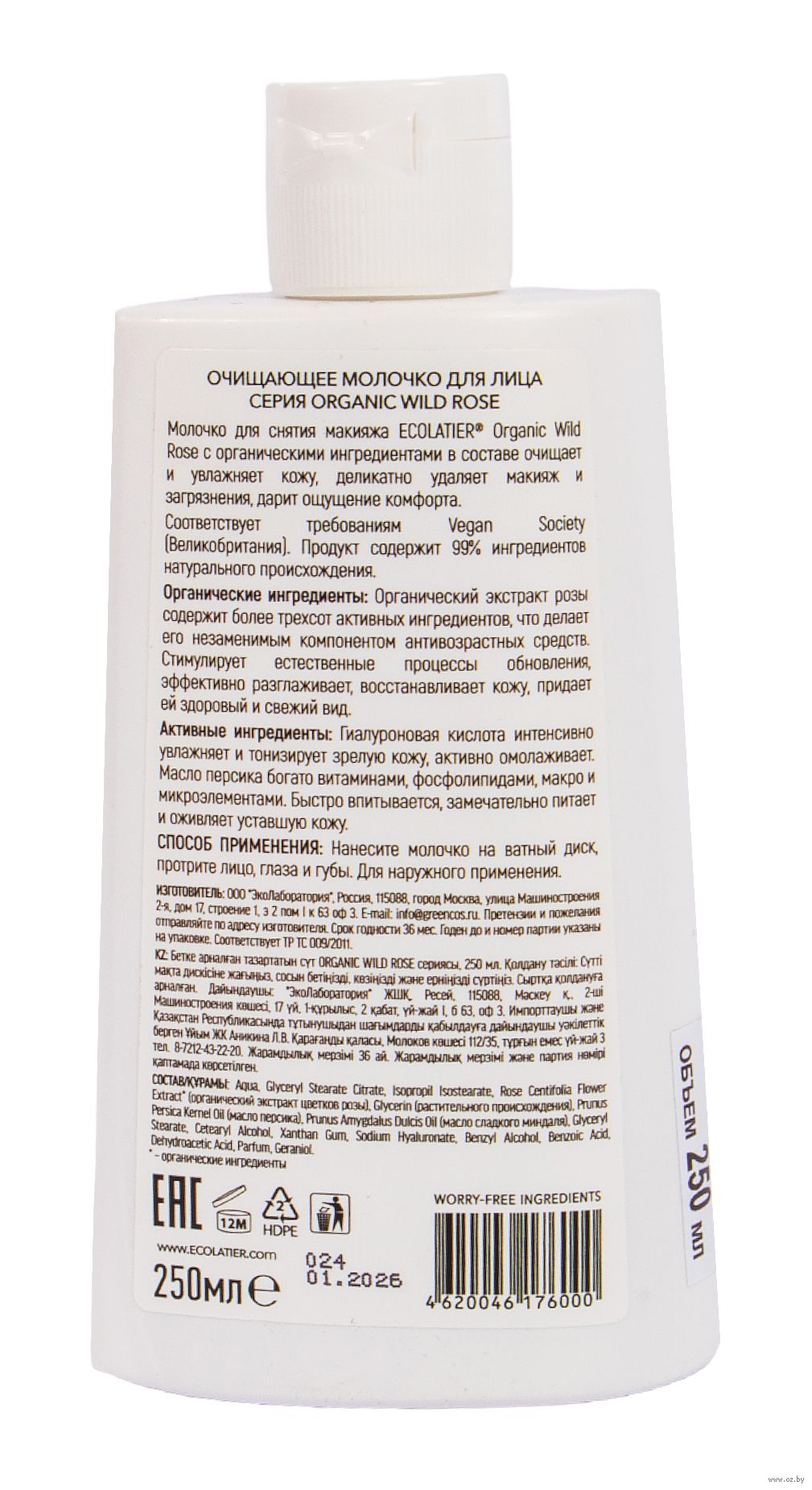 Молочко для снятия макияжа с органическими ингредиентами в составе очищает и увлажняет кожу, деликатно удаляет макияж и загрязнения, дарит ощущение комфорта.