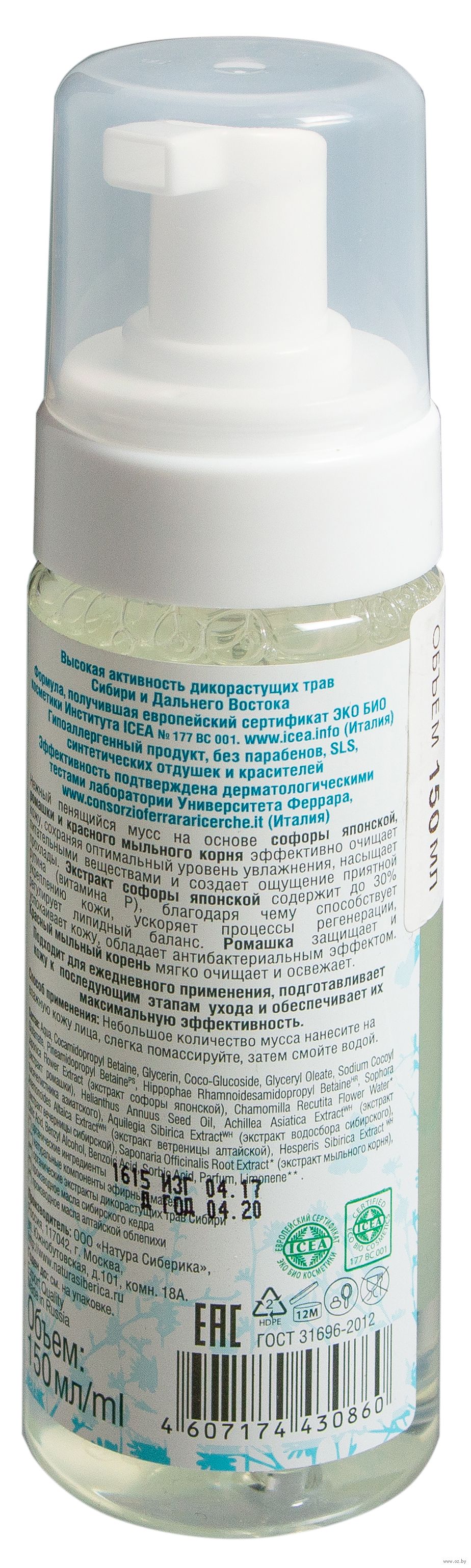 Нежный пенящийся мусс для жирной и комбинированной кожи на основе софоры японской, ромашки и красного мыльного корня эффективно очищает кожу, сохраняя оптимальный уровень увлажнения, насыщает питательными веществами и создает ощущение приятной прохлады.