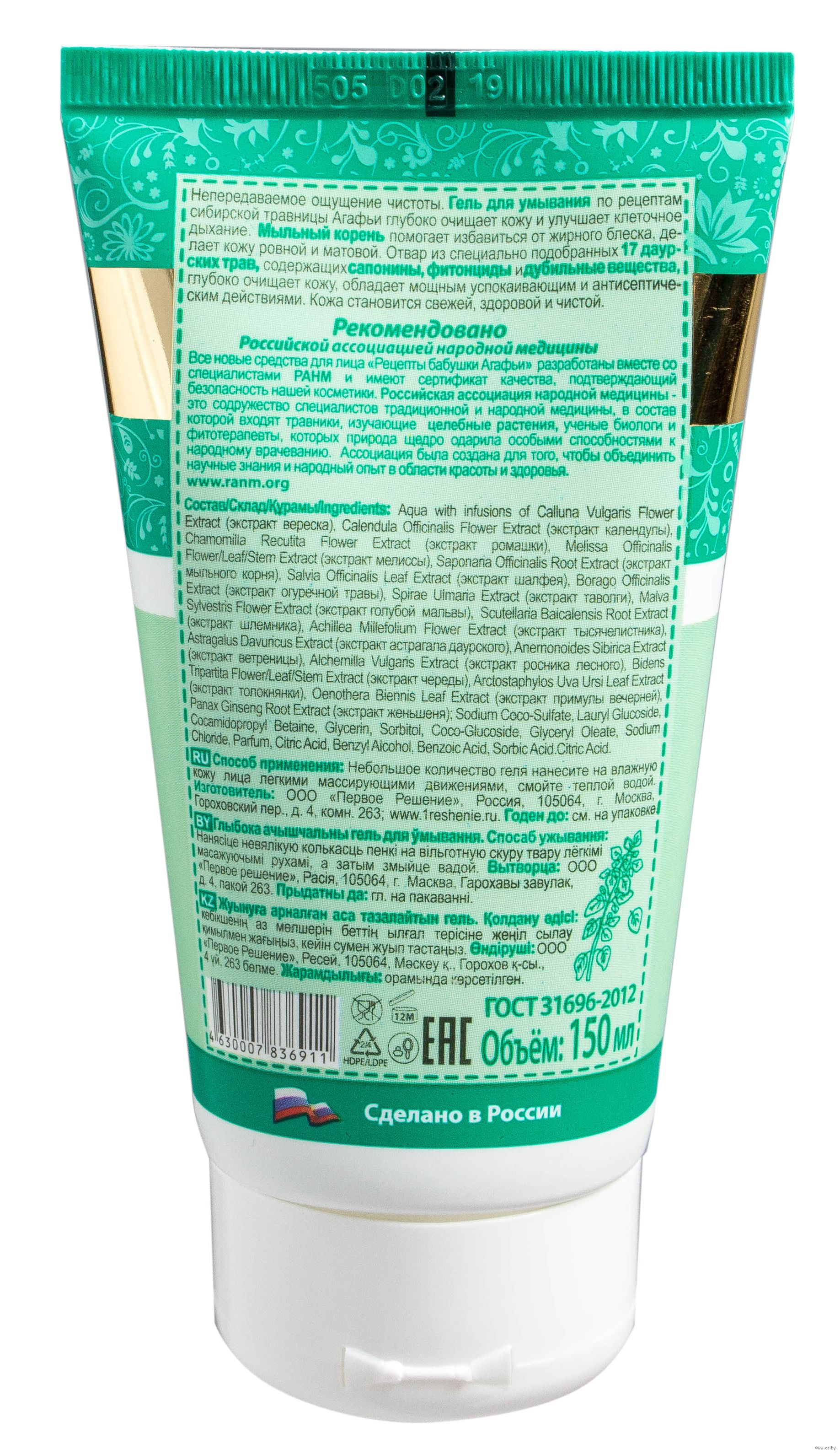 Гель для умывания по рецептам сибирской травницы Агафьи глубоко очищает кожу и улучшает клеточное дыхание.