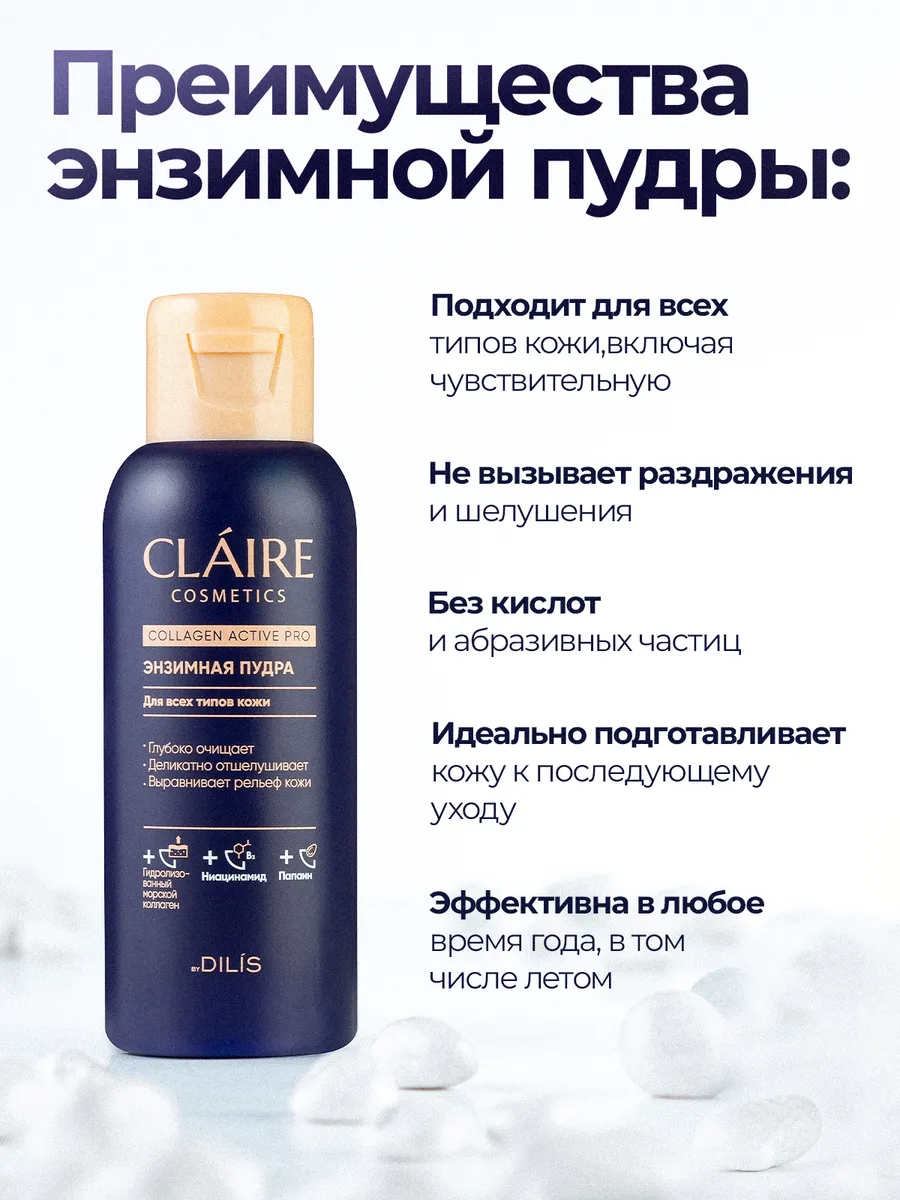 Усиливает эффективность последующего ухода – после энзимной пудры сыворотки и кремы работают в 2 раза лучше, проникая в глубокие слои кожи.