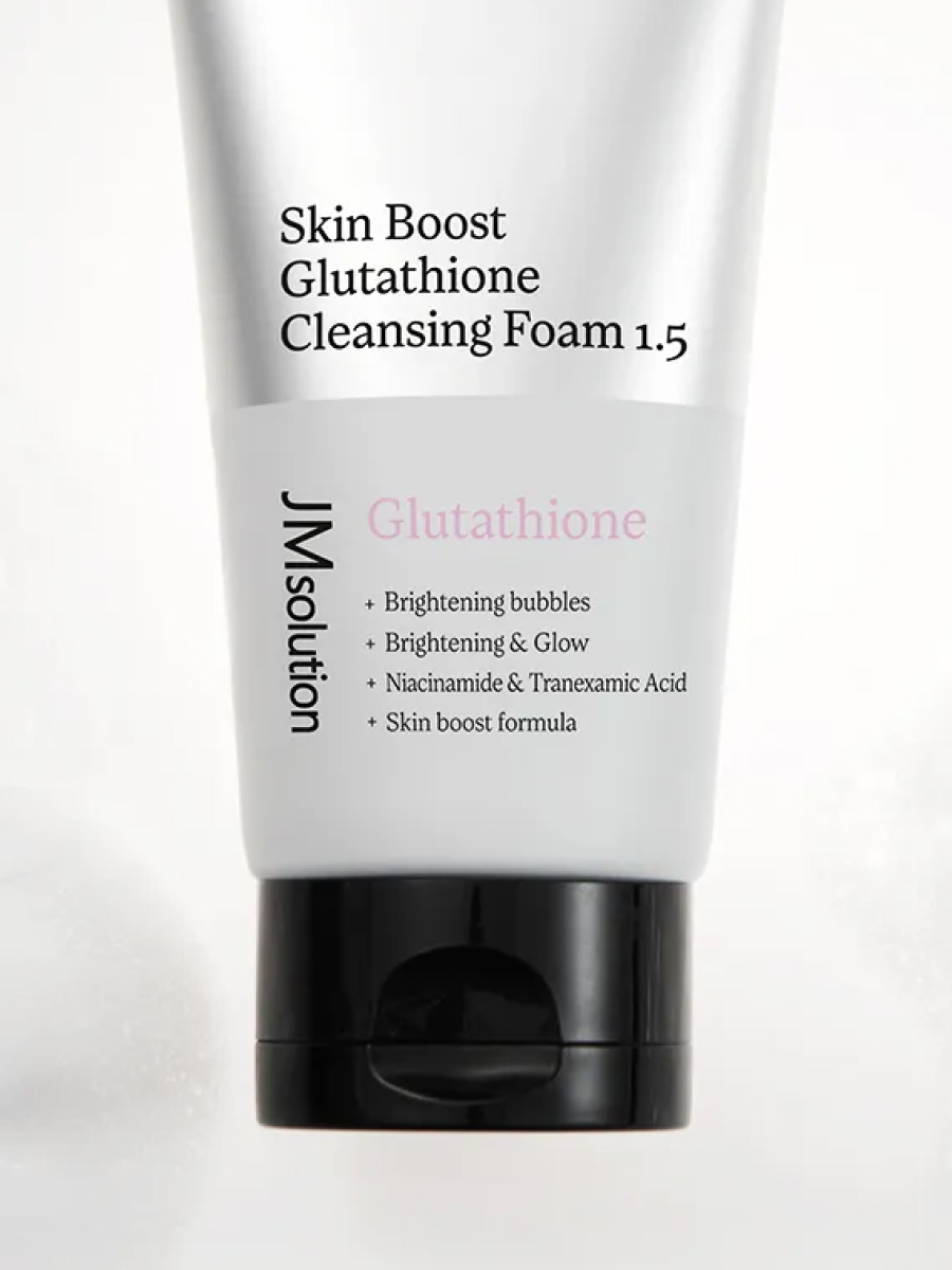 JMsolution Skin Boost Glutathione Cleansing Foam – это многофункциональная корейская пенка для умывания с мощным антиоксидантом глутатионом, которая эффективно очищает кожу от загрязнений, остатков макияжа и излишков себума, выравнивает тон и придаёт сияние.