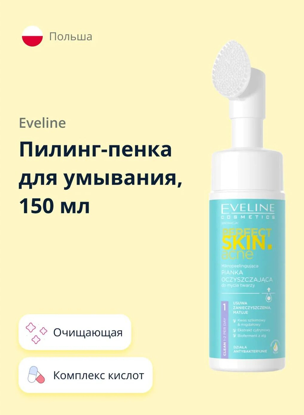 Формула с шикимовой и миндальной кислотами позаботится о глубоком очищении кожи и отшелушивании омертвевшего эпидермиса. Богатство активных ингредиентов – экстракт лимона и биофермент водорослей прекрасно освежат и напитают кожу. Мягкая формула снимет воспаление и придаст коже сияние.