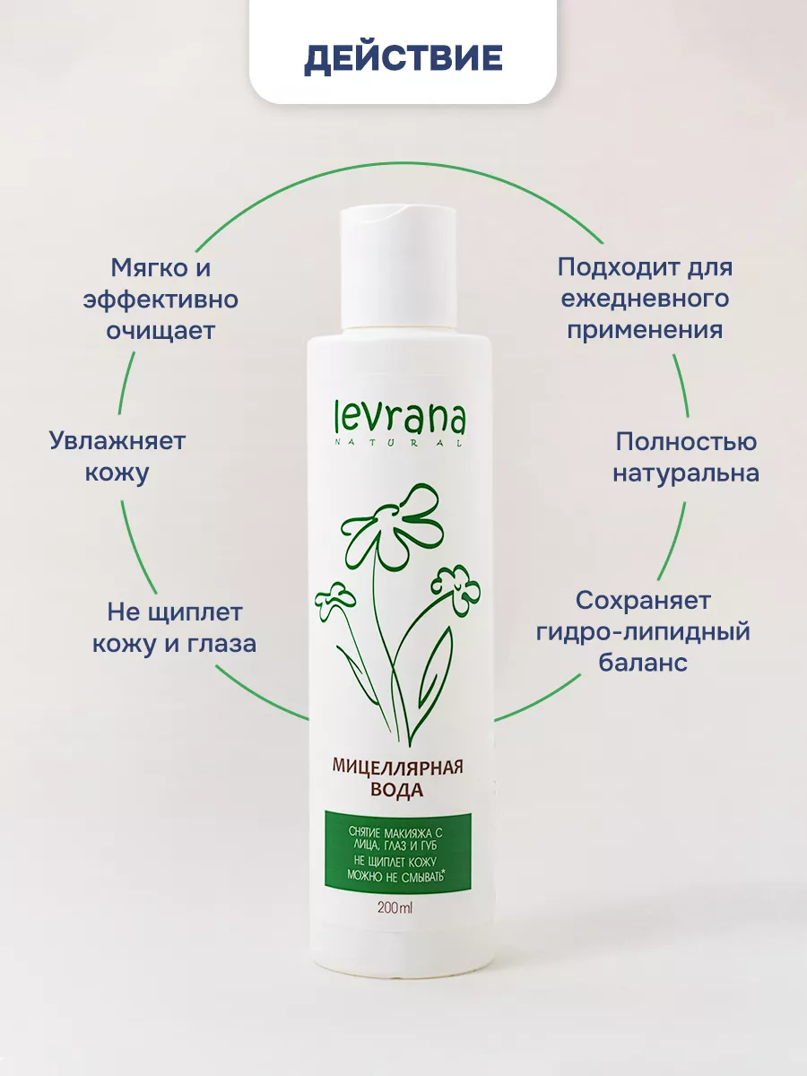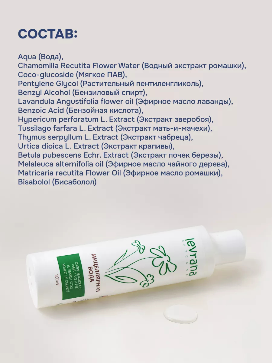 Мицеллярная вода абсолютно натуральная, создана на гидролате Ромашки.