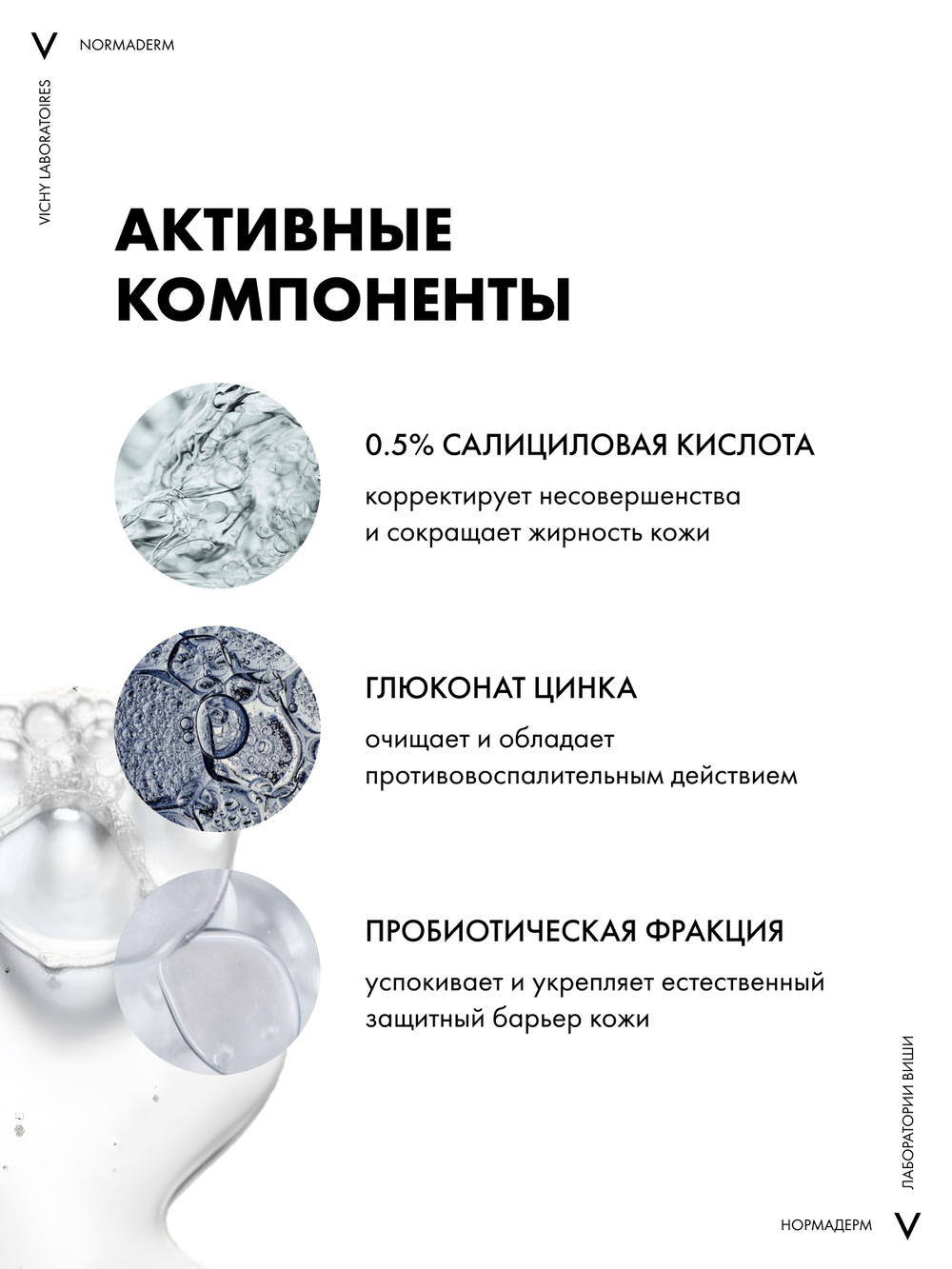 Без мыла и сульфатов. Не пересушивает кожу при частых умываниях. Предотвращает появление новых несовершенств. Не вызывает повышенное выделение себума.