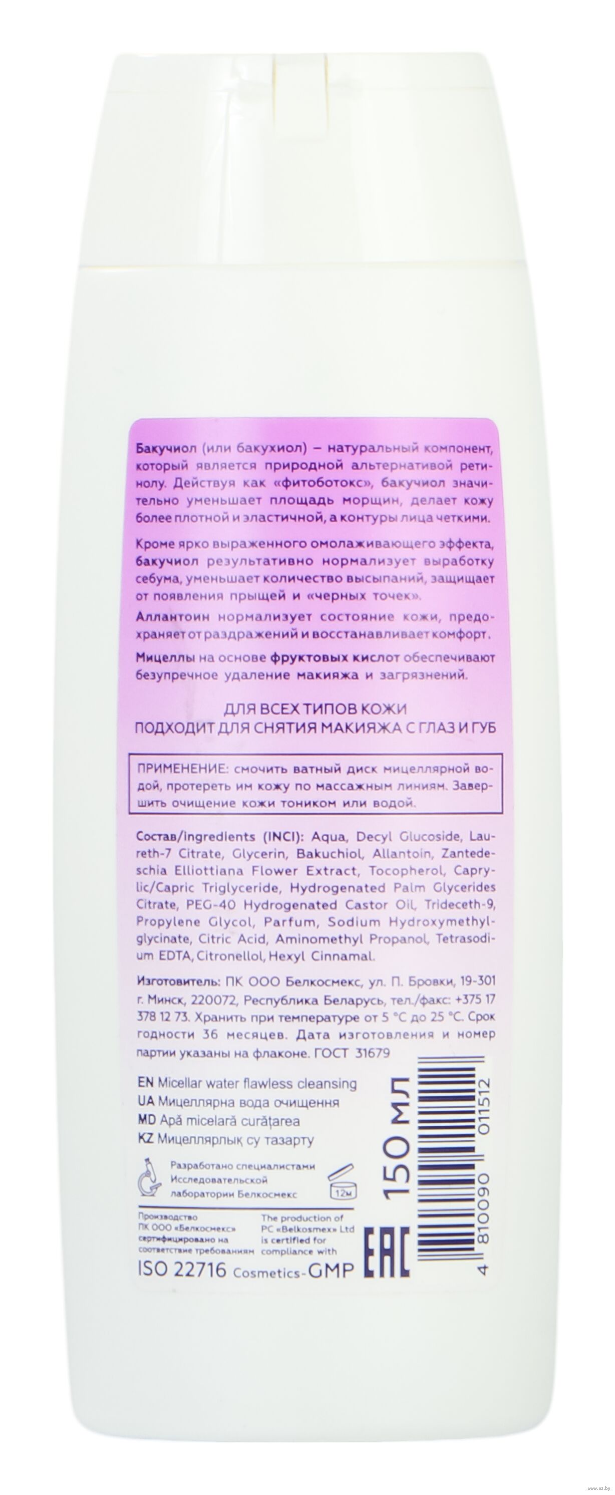 Аллантоин эффективно нормализует состояние кожи, предохраняет от возникновения раздражений и шелушения, бережно ухаживает и восстанавливает комфорт кожи. Мицеллы на основе фруктовых кислот обеспечивают быстрое и безупречное снятие макияжа и загрязнений.