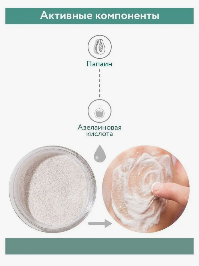 При добавлении воды пудра превращается в легкую пену, активируя действие мягкого очищающего комплекса и азелаиновой кислоты, превращая процесс умывания в настоящий ритуал красоты.