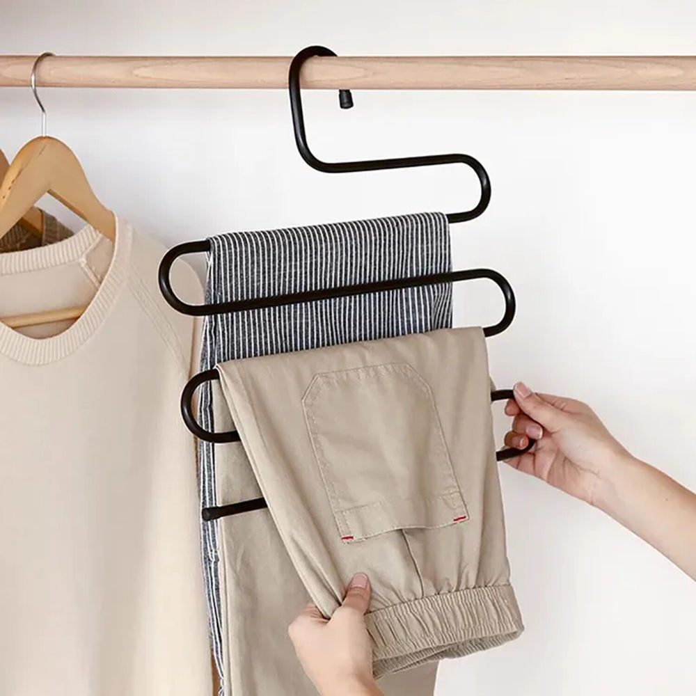 Вешалка для брюк и одежды "Змейка" позволяет повесить большее количество одежды на вешалку, что экономит время и облегчает поиск нужной вещи в шкафу.