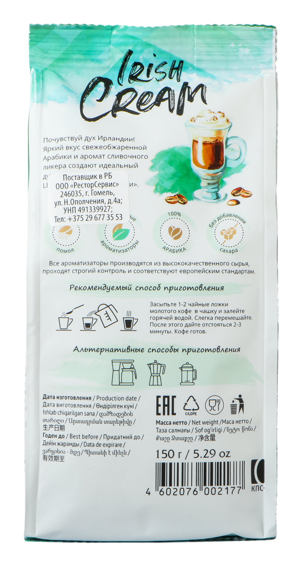 Почувствуй дух Ирландии! Яркий вкус свежеобжаренной Арабики и аромат сливочного ликера создают идеальный дуэт в молотом кофе LEBO "Ирландские сливки".