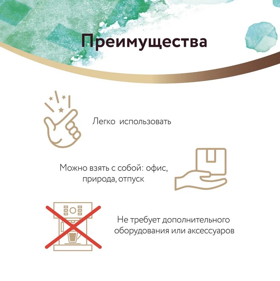 Дрип кофе отличается легкостью в использовании и не требует специальных навыков приготовления. Это идеальный выбор для домашнего использования, путешествий или офисных перерывов. Наслаждайтесь качественным кофе в любое время и в любом месте!
