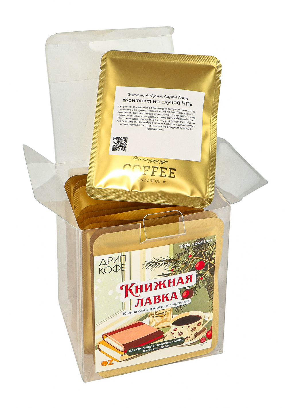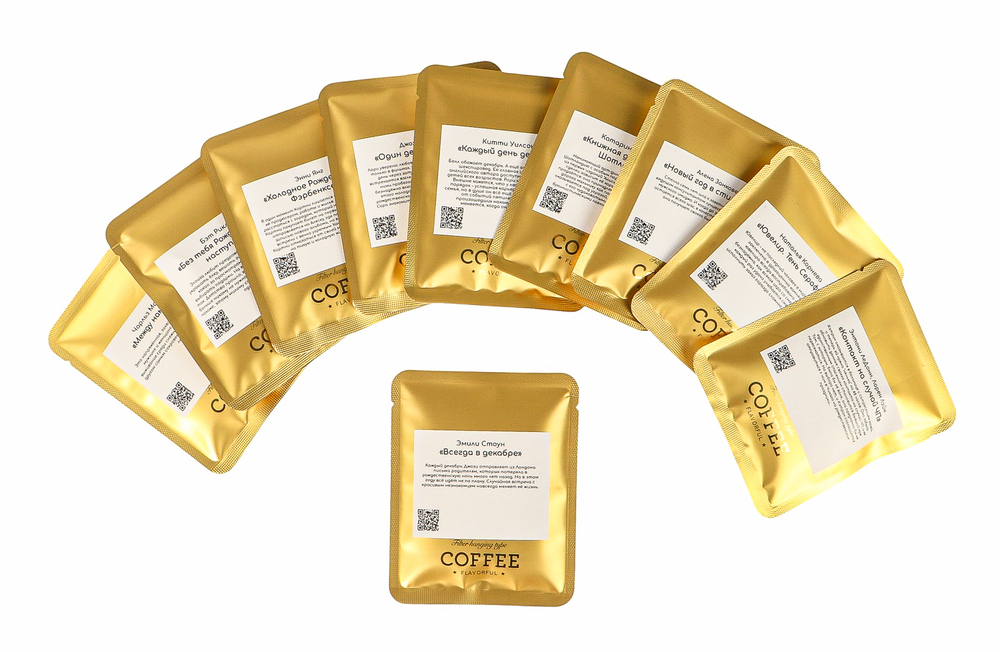 "Книжная лавка. Зимняя" – это набор кофе в дрип-пакетах моносортовой арабики, созданный специально для холодных зимних вечеров.