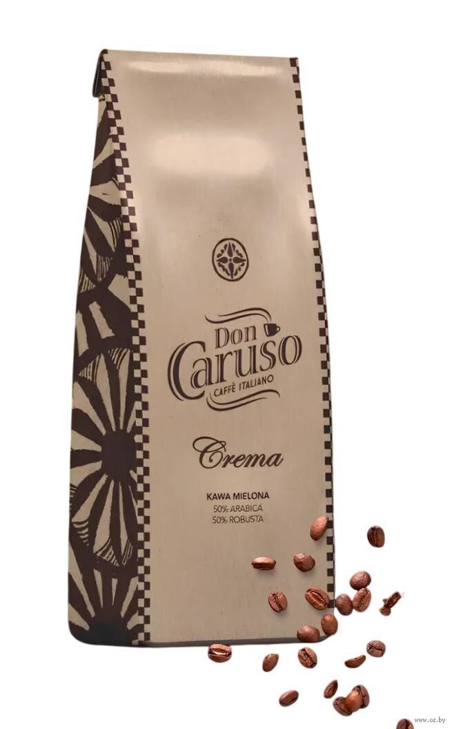 Кофе Don Caruso Crema – это классическая итальянская зерновая смесь кофе (50% Арабика/50% Робуста), известная своим интенсивным, классическим итальянским ароматом и бархатистой, плотной кремовой пенкой (crema).