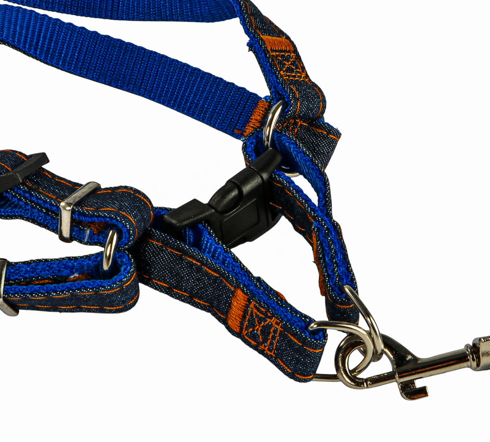 Шлейка оснащена металлическими кольцами для поводка и пластиковой застежкой-фастексом, которая позволяет в считанные секунды зафиксировать ошейник на собаке и так же легко снять его. На поводке имеется прочный и удобный карабин.
