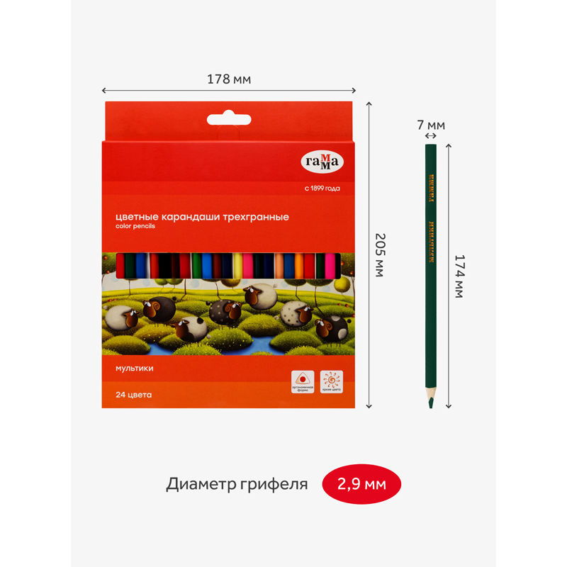 Набор карандашей цветных "Мультики. Трехгранные" (24 цвета)
