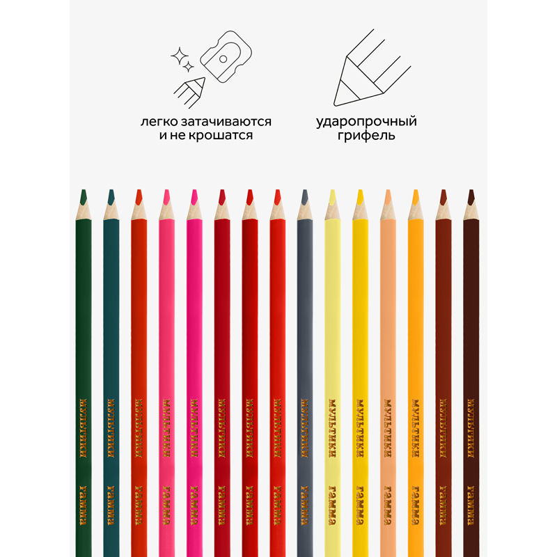 Цветные карандаши серии "Мультики" выполнены в эргономичном трехгранном корпусе, который подскажет ребенку, как правильно держать карандаш во время творческих занятий.
