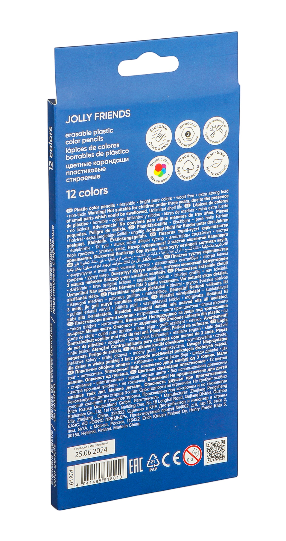 Набор пластиковых цветных карандашей "Jolly Friends" (12 цветов)