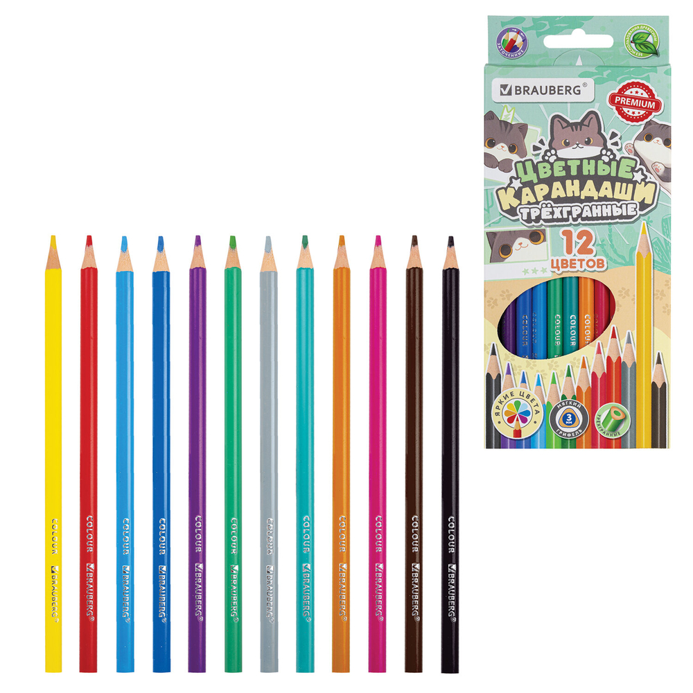 Трехгранная форма сечения корпуса позволяет не скатываться карандашу с поверхности стола во время занятий рисованием. Карандаши изготовлены из высококачественного материала и имеют лакированный корпус. Качество исполнения гарантирует легкую заточку. Грифель обладает повышенной прочностью. Все карандаши заточены и поставляются в красочной картонной упаковке с европодвесом.
