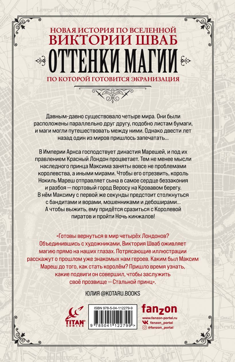 Две сотни лет прошло с тех пор, как четыре мира были магическим образом запечатаны друг от друга. Красный Лондон, столица Империи Арнса, процветает под правлением династии Марешей. Но когда король Нокиль Мареш узнаёт, что его сын, принц Максим, больше думает не о собственном королевстве, а об иных мирах, он отправляет его в опасный поход в надежде обратить взгляд принца на насущные проблемы.