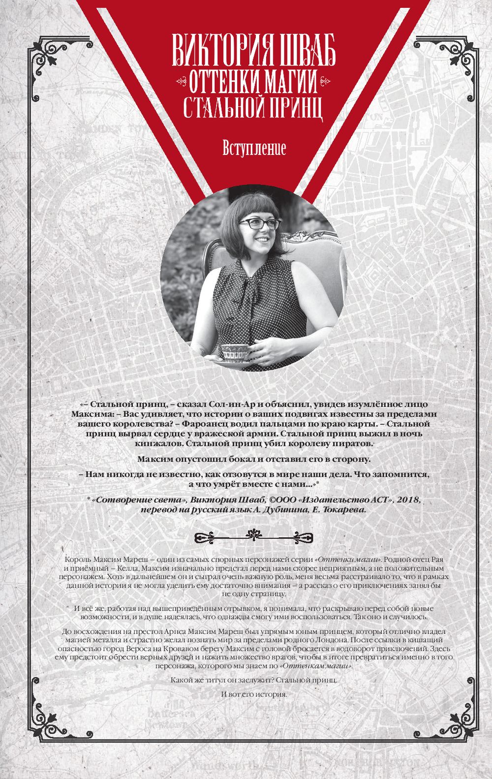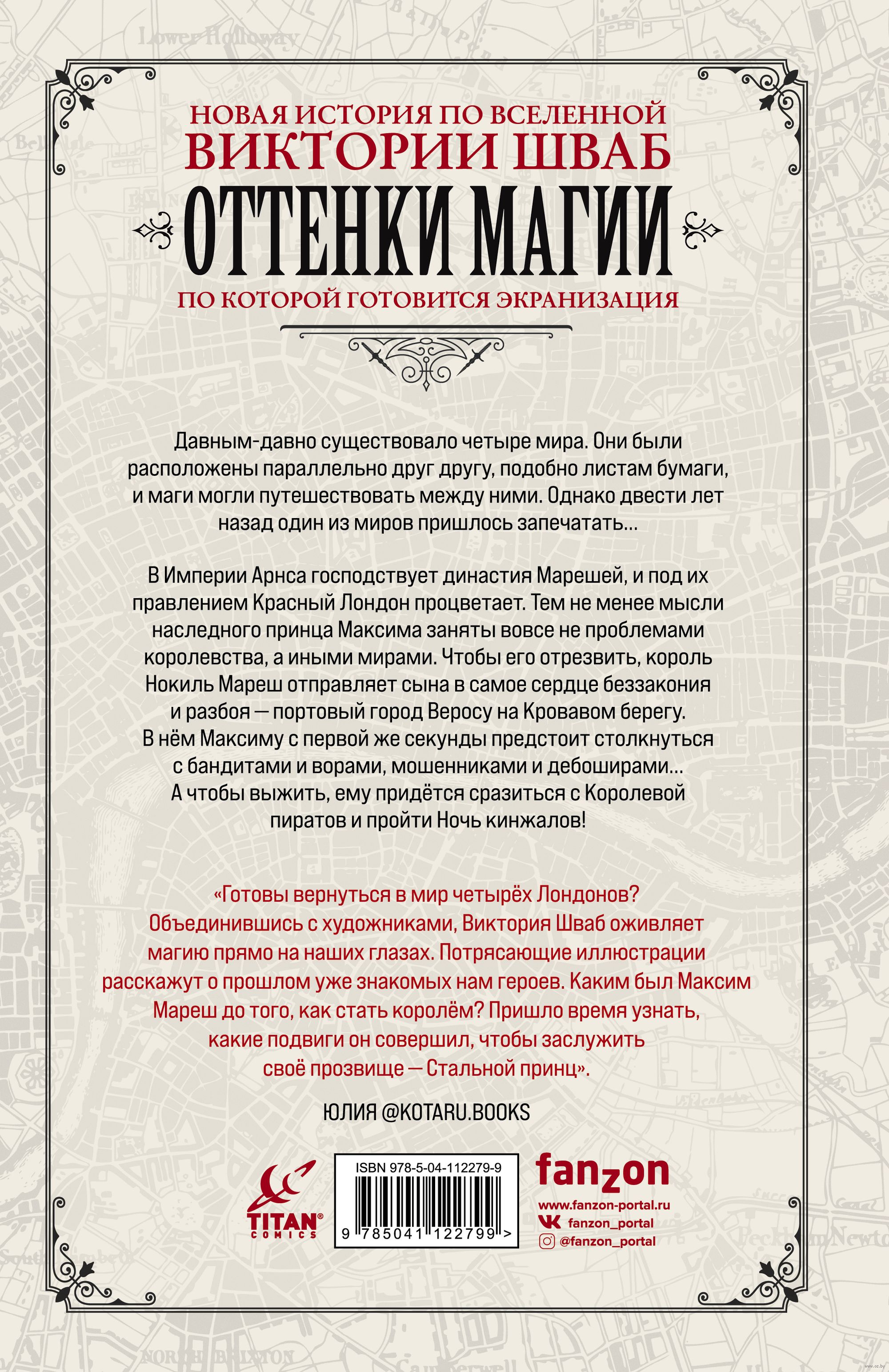 Новая история по вселенной "Оттенков магии" – цикла, завоевавшего сердца тысяч читателей по всему миру – расскажет про приключения Максима Мареша, отца принца Рая. Потрясающе стильная рисовка в исполнении Андреа Олимпиери и Бади Сетьявана. Множество интереснейших дополнительных материалов: интервью с Викторией Шваб, дизайны персонажей и уникальные факты о работе над комиксом и обложками.