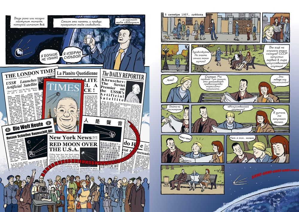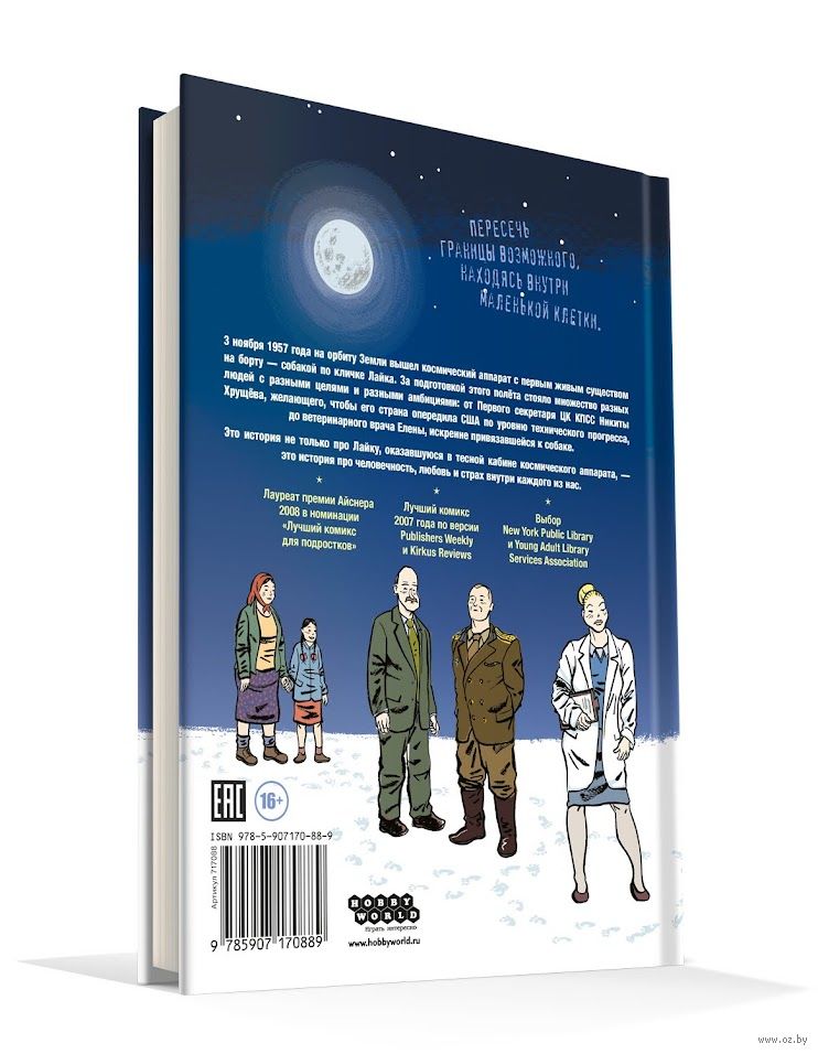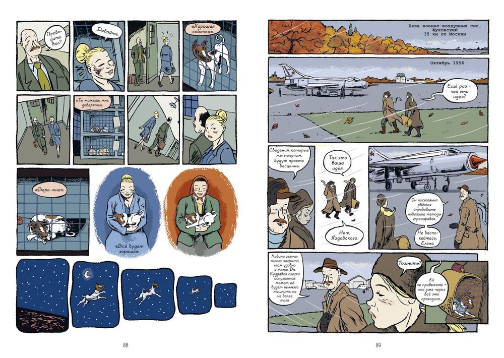 Повествование со стороны амбициозного, смелого Сергея Королёва основателя ракетно-космической техники в СССР о том, с каким сложностями сталкивались ученые в тот период. Рассказ о строгой и заботливой Елене Дубровской дрессировщице собак-космонавтов, которая готовила своих подопечных к заранее обреченной миссии. История основоположника космической медицины – Олега Газенко. И, конечно, этот комикс о героической и трогательной дворняжке, которая прошла неповторимый путь с холодных Московских улиц прямо к звездам.