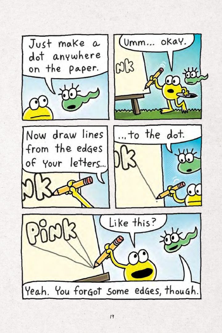 The shenanigans are nonstop and the baby frogs' minicomics are funny and full of heart. Creating stories within a story, author and illustrator Dav Pilkey uses a variety of techniques – including acrylic paints, colored pencils, Japanese calligraphy, photography, collage, gouache, watercolors, and much more – to portray each frog's perspective. The kaleidoscope of art styles, paired with Pilkey's trademark storytelling and humor, fosters creativity, collaboration, independence, and empathy. Readers of all ages will relish this joyful graphic novel adventure.