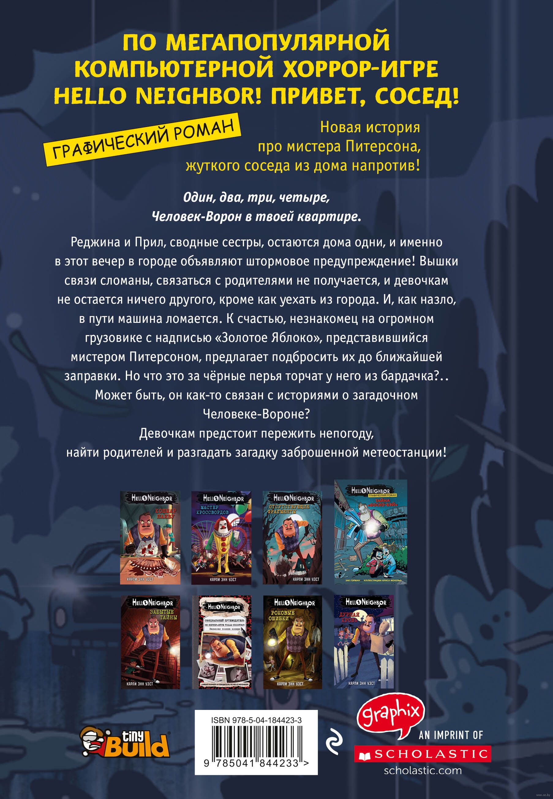 Графический роман по мегахиту "ПРИВЕТ, СОСЕД!". Отличный подарок для всех, кто любит ужасы и книги по играм! В этой книге вы впервые окажетесь в гнезде Человека-Ворона и посетите жутковатую заброшенную метеостанцию!