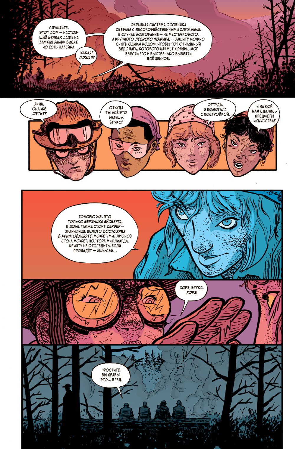 В ваших руках полное издание комикса "Тёмные места: лесной пожар" – невероятной истории об ограблении за авторством легендарного сценариста Скотта Снайдера и прорывного художника Хейдена Шермана!