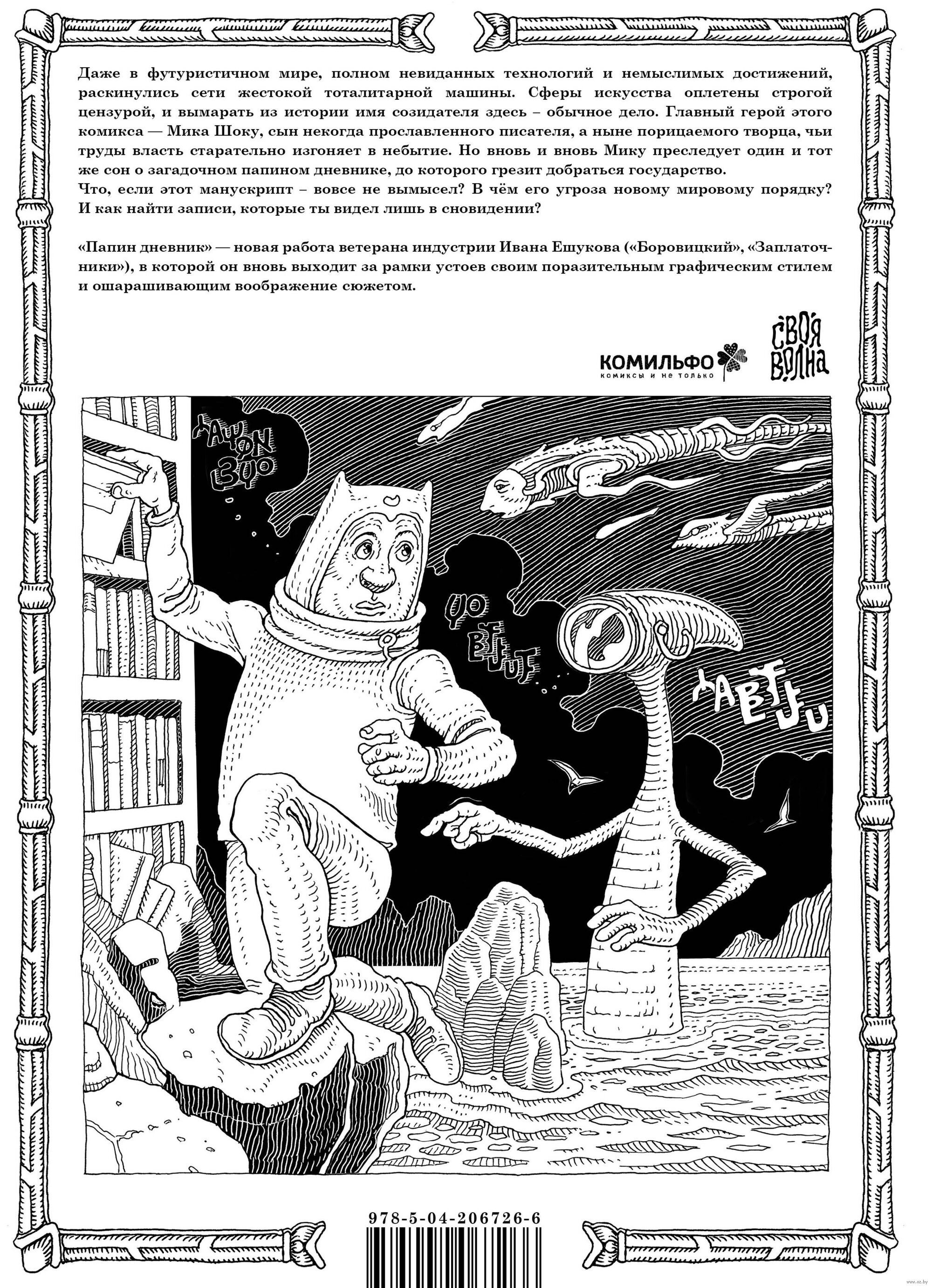 "Папин дневник" – новая работа ветерана индустрии Ивана Ешукова ("Боровицкий", "Заплаточники"), в которой он вновь выходит за рамки устоев своим поразительным графическим стилем и ошарашивающим воображение сюжетом.